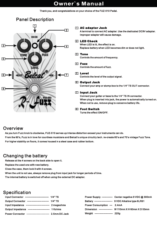 BELCAT FUZ-510 Педаль гитарная Fuzz