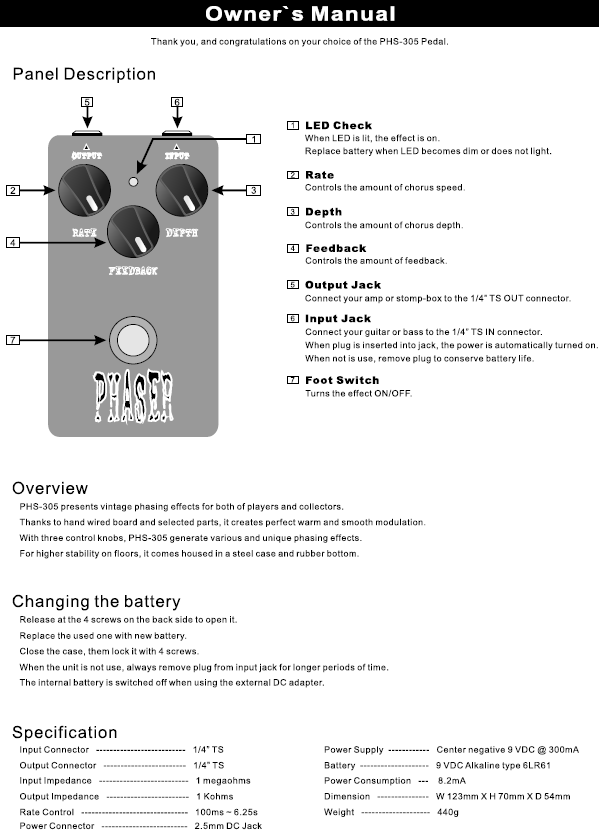 BELCAT PHS-305 Педаль гитарная Phaser