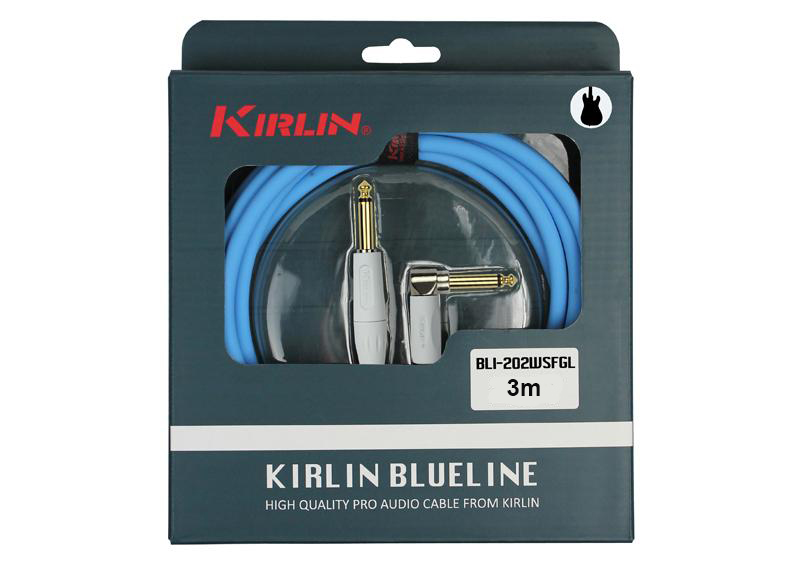 BLI-202WFGL-3M-BE  Кабель инструментальный: синего цвета, 3 метра 20AWG, 1/4" - 1/4" RT ANGLE