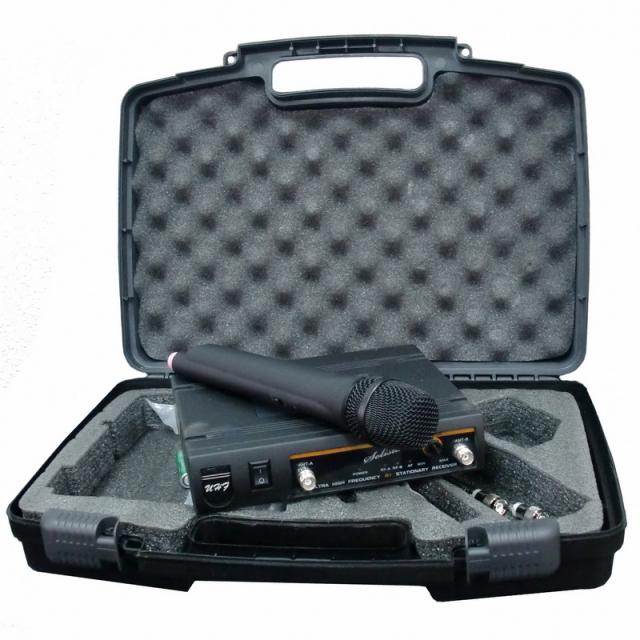 Вокальная радиосистема диапазона UHF с приёмником и ручным микрофоном в кейсе.