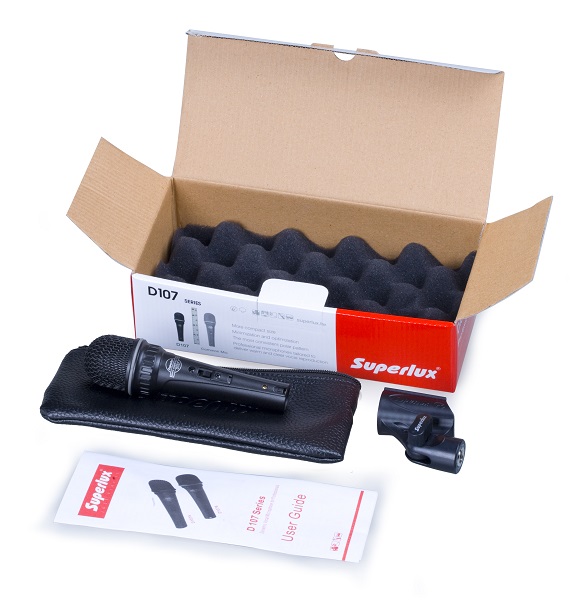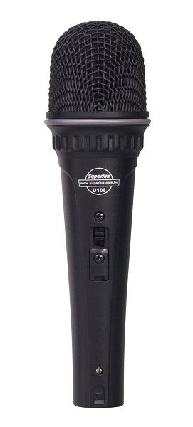 Superlux D108B — Динамический вокальный микрофон. Серия микрофонов Superlux D107 стала новой вехой в мире профессиональных вокальных микрофонов. Данный микрофон отличается компактным и эргономичным дизайном, удобством и простотой использования. Это микрофон с суперкардиоидной диаграммой направленности. Компактный дизайн решетки позволяет достигать "эффекта близости" для низких частот, что при близком расположении к источнику звука добавляет красок басам. Микрофон прекрасно подходит как для живых выступлений, так и для записи на студии.